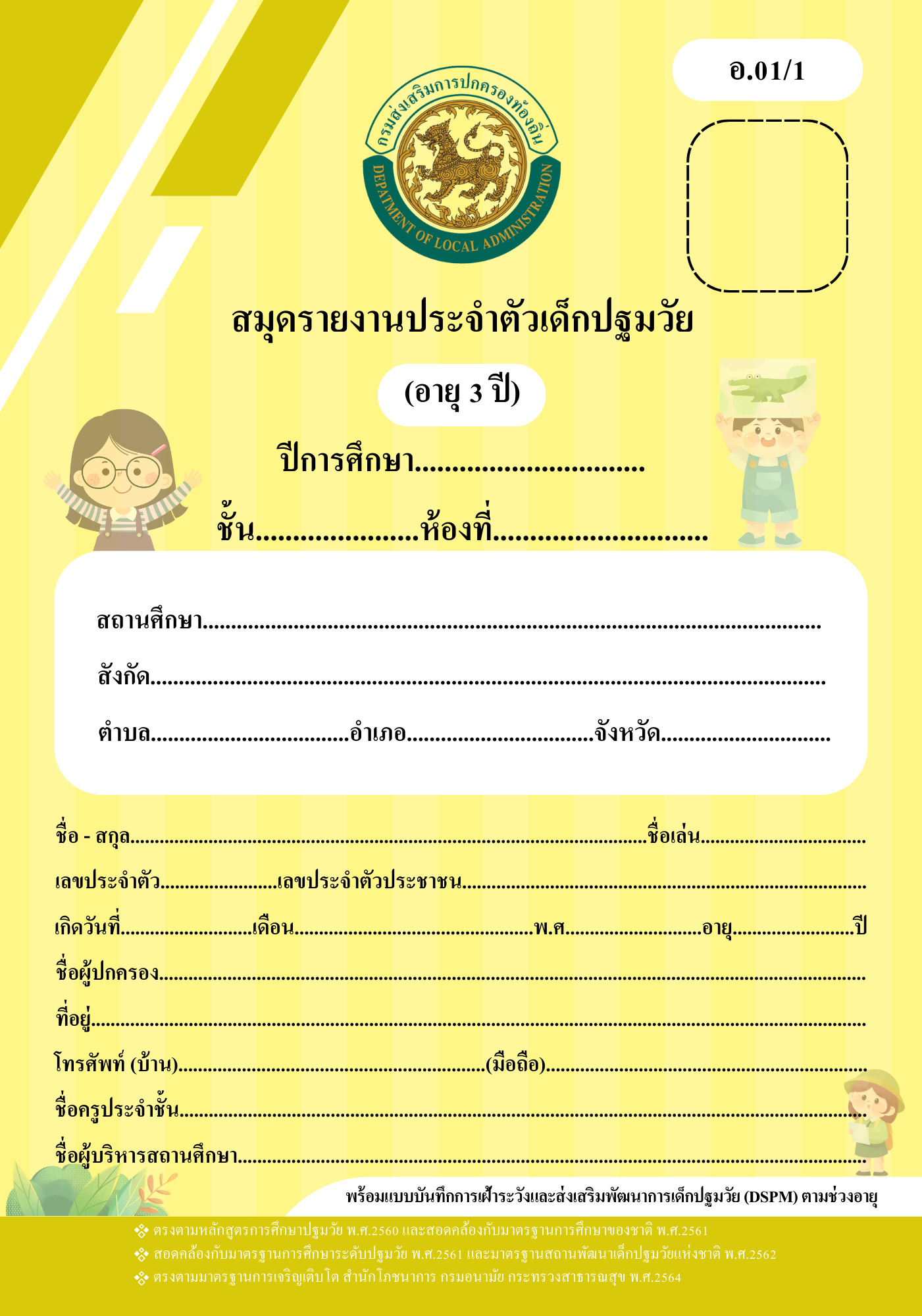 สมุดรายงานประจำตัวเด็กปฐมวัย (อ.01/1) อายุ 3 ปี ปกลายการ์ตูน สำหรับโรงเรียนอนุบาล (สพฐ และเอกชน)